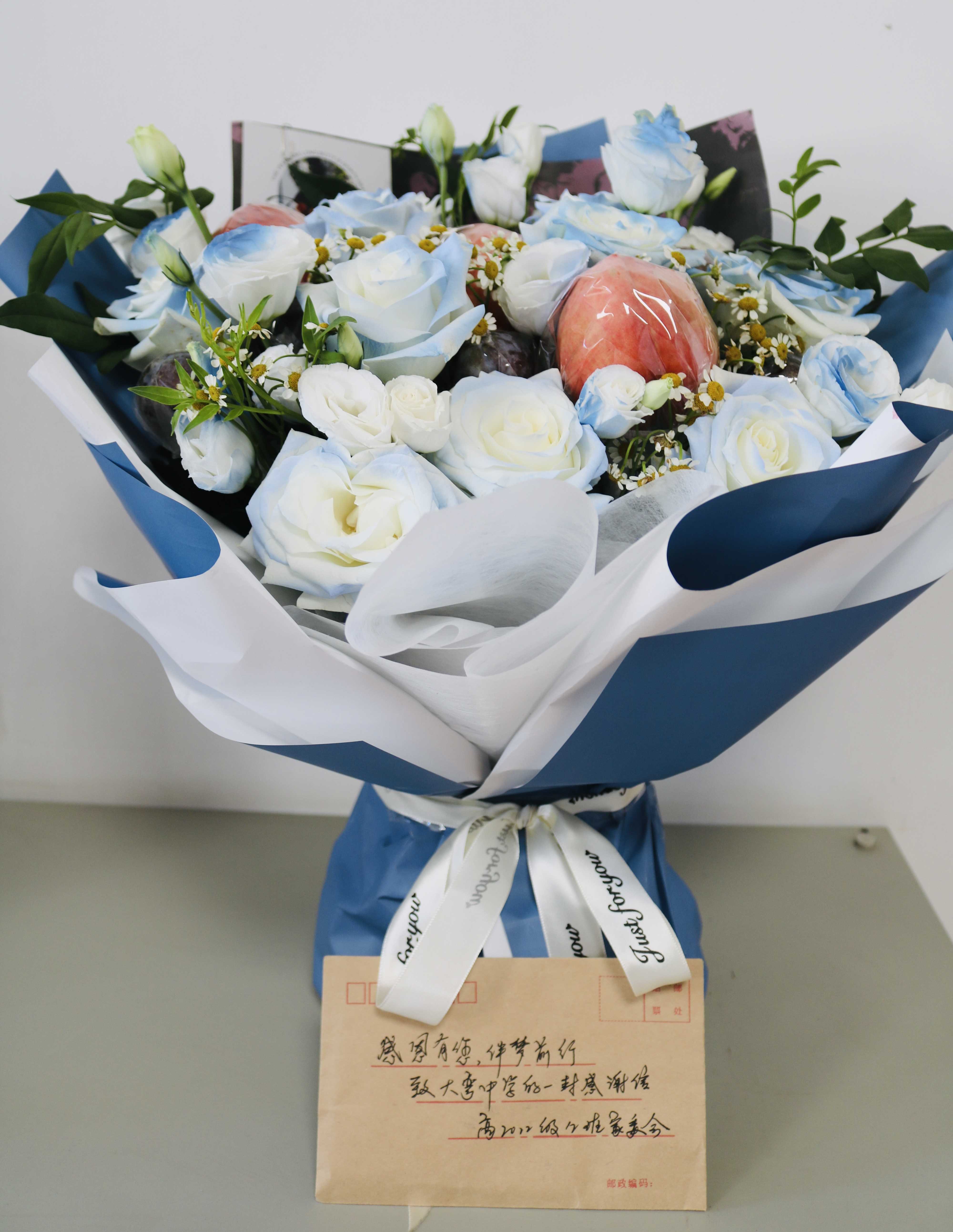 在锦旗之外,家长们还精心准备了手写感谢信与桃李花束。鲜花簇拥着家长精心挑选的新鲜桃李,“桃李满天下” 的传统意象在此刻有了鲜活注脚。 淡香萦绕的办公室里,感谢信上的墨香与花束的花果香交织,让这个夏日充满了爱的回响—— 原来比锦旗更厚重的,是那些被岁月珍藏的点滴师恩,比鲜花更绚烂的,是家校之间无需言说的心意相通。