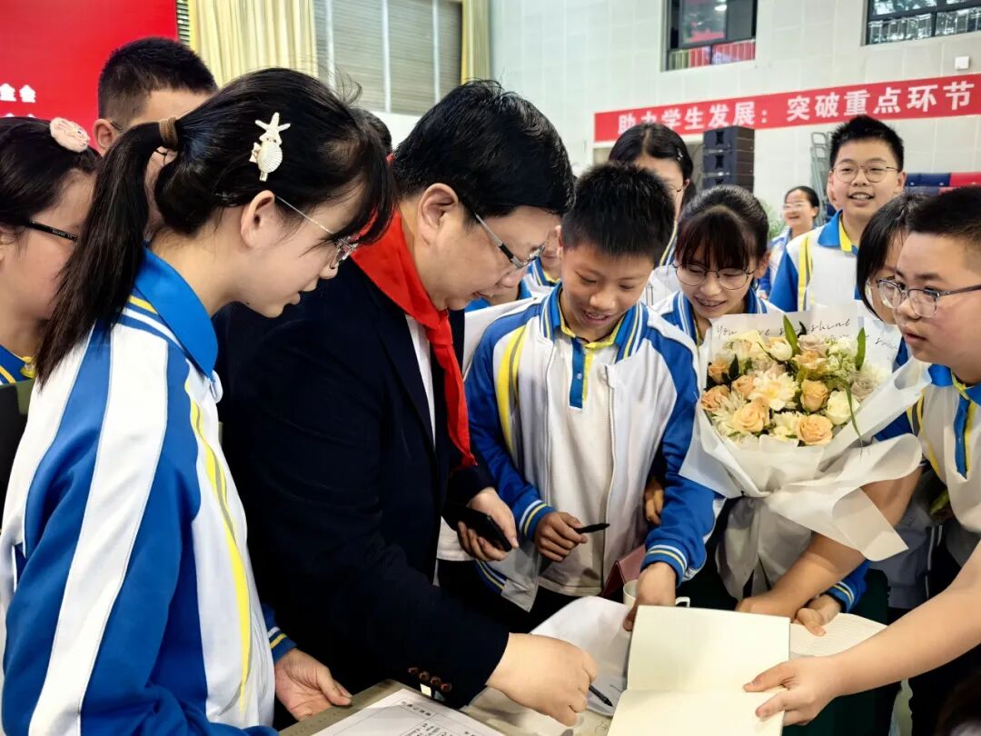 讲座结束时,同学们难掩内心的崇敬之情,向王教授献上热烈的掌声与鲜花。之后,同学们纷纷簇拥在王教授身边,手里拿着笔记本、书籍等各种可以留下签名的物件,期待地喊着:“王教授,给我签个名吧!”现场气氛热烈非凡,处处都洋溢着对王教授学识与人格魅力的由衷钦佩。
