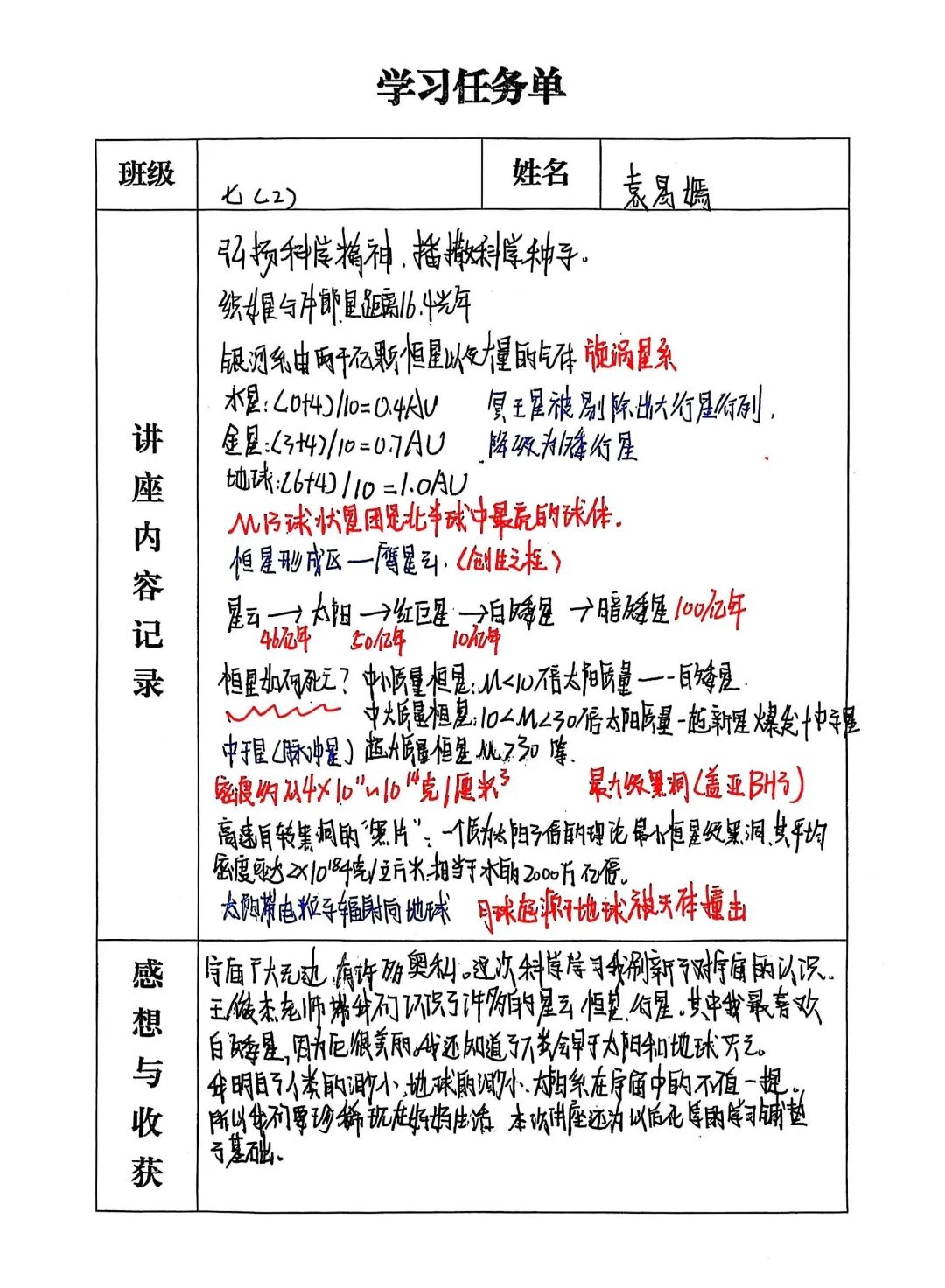 接下来,王教授带领大家开启了这场横跨星河的科学之旅。“宇宙中有哪些类型的天体?”通过这一问题,王教授与同学们展开了热烈且充满智慧的问答互动,迅速地勾勒出整个宇宙神秘浩瀚的轮廓。
