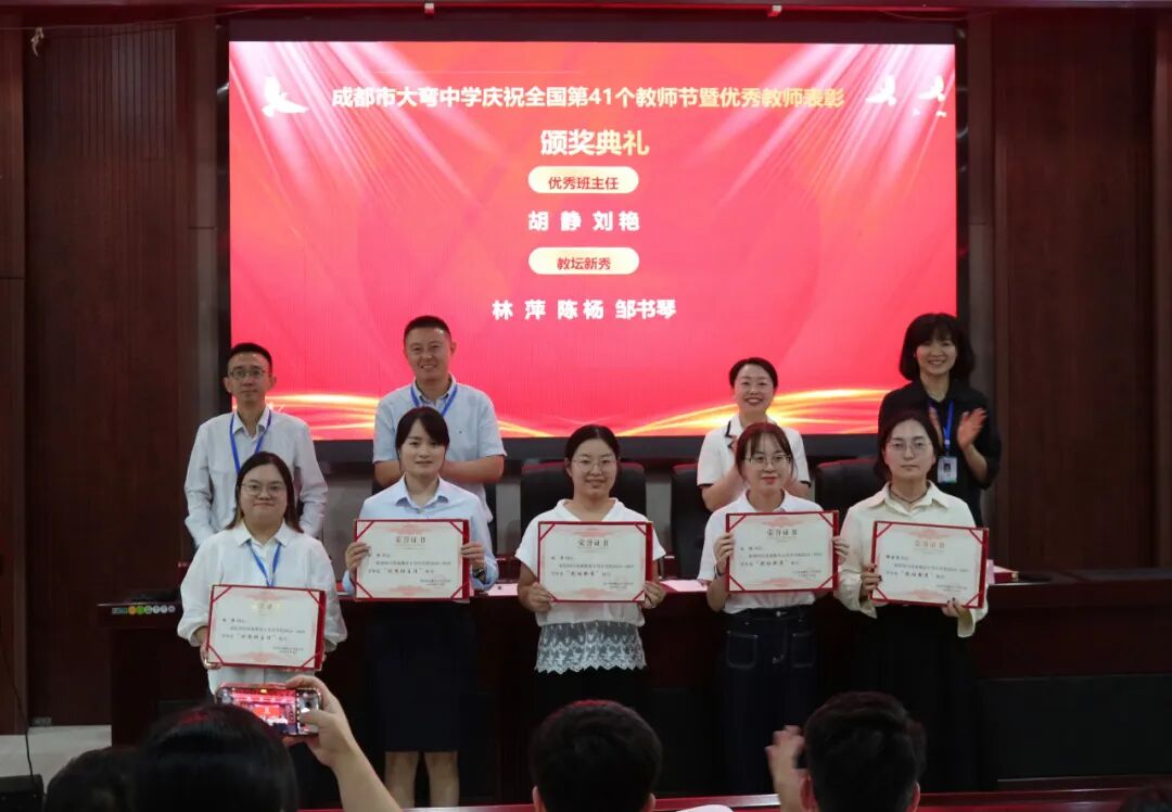 颁奖环节中,台上领导们亲手将荣誉证书颁发给获奖教师,台下热烈的掌声既是对获奖教师的祝贺,也是对他们教育成果的崇高敬意。