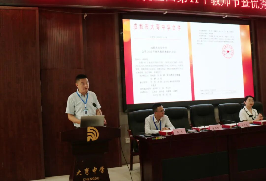 党委专职副书记唐天利宣读了表彰文件。在这宣读声中,那些默默耕耘、无私奉献的身影愈发清晰。这不仅仅是简单的宣读,更是对所有教职工辛勤付出的一次郑重肯定,让这份独属于教师节的荣耀与自豪,深深地烙印在了每一位教职工的心中。